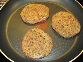 Bakið buffin í ofni í 10 mínútur á hvorri hlið við 190°c eða steikið á pönnu í smávegis olíu.